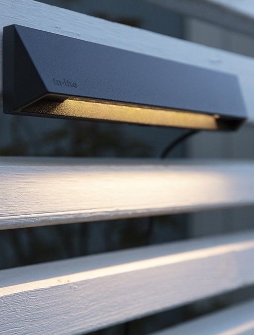 De WEDGE SLIM DARK is een slank wandarmatuur met een brede lichtuittrede die perfect is om te gebruiken als oriëntatieverlichting, bijvoorbeeld op een laag muurtje langs een pad of oprit.